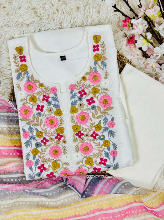 Raw Silk with Embroidery